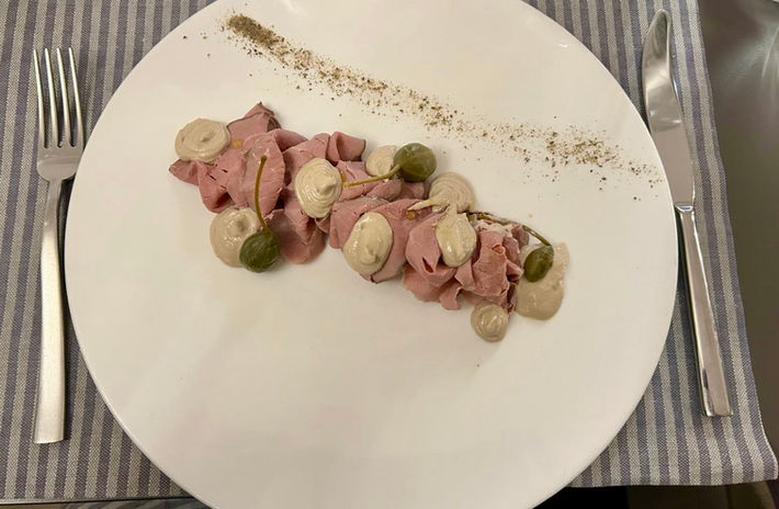 In fast jedem Restaurant begegnete uns anschließend das Vitello Tonnato, jener Klassiker, der in Turin allgegenwärtig ist. Unsere eigene Variante aber trägt die Signatur des Weinguts Fontanafredda, das uns einst mit einer modernen Interpretation dieses Traditionsgerichts überraschte – zartes Kalbfleisch, cremige Thunfischsauce, elegant und leicht zugleich.